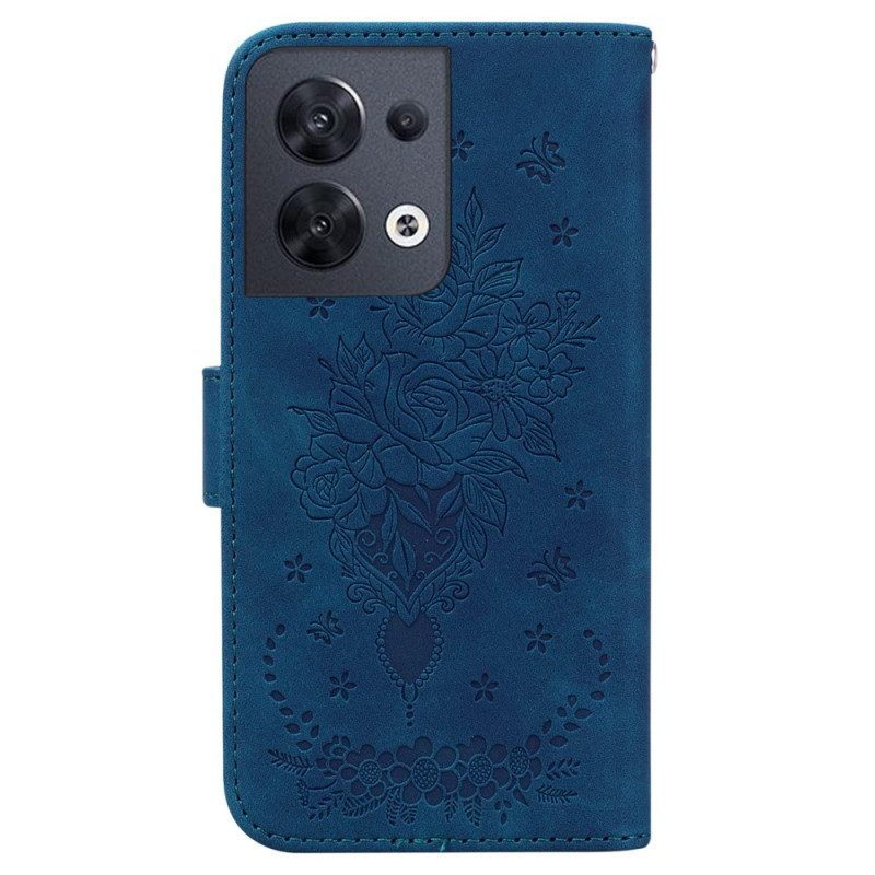 Flip Case Für Oppo Reno 8 Mit Kordel Riemchenrosen Und Schmetterlinge