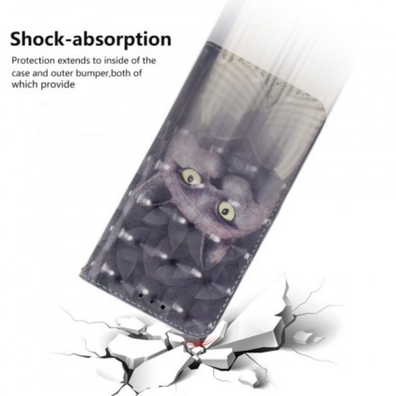 Flip Case Für Samsung Galaxy A20e Mit Kordel Graue Katze Mit Riemen