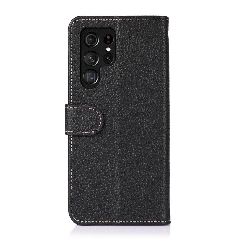 Flip Case Für Samsung Galaxy S22 Ultra 5G Echtes Khazneh-litschi-leder