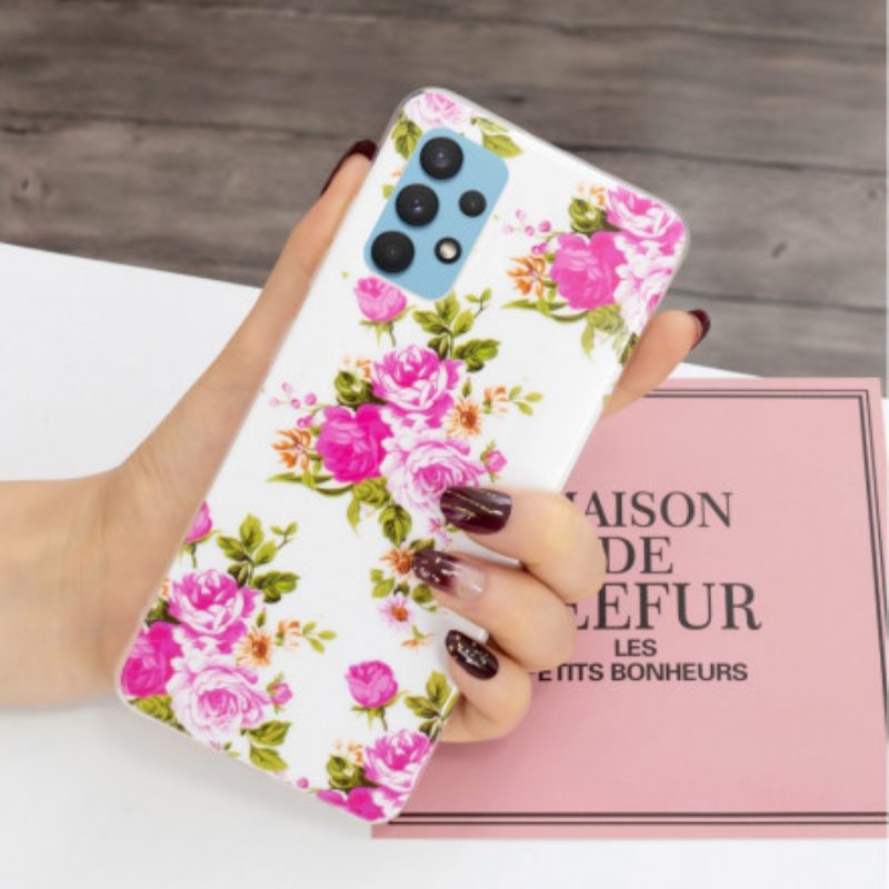 Handyhülle Für Samsung Galaxy A32 Fluoreszierende Freiheitsblumen