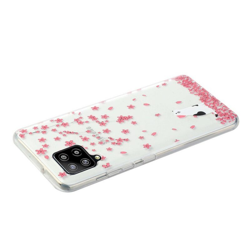 Ihr Samsung Galaxy A12 / M12. Dekoriert Mit Blütenblättern, Die Auf Die Katze Fallen, Dank Dieser Einzigartigen Und Blumigen Hülle!