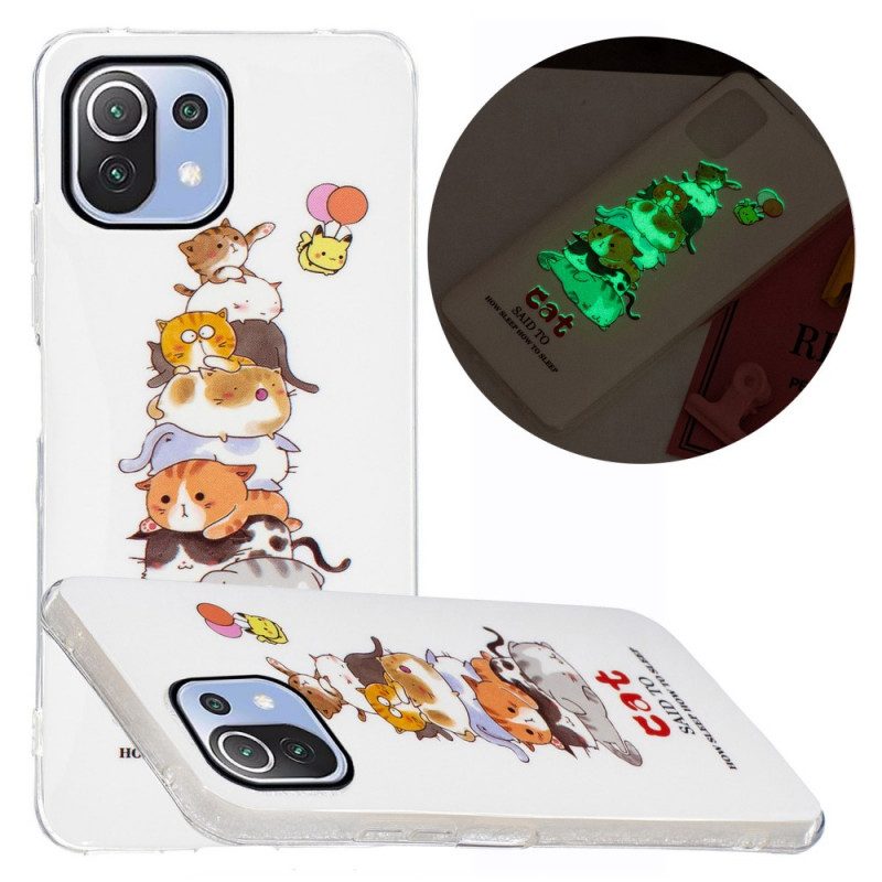 Handyhülle Für Xiaomi Mi 11 Lite 4G / 5G / 5G NE Fluoreszierende Katzen