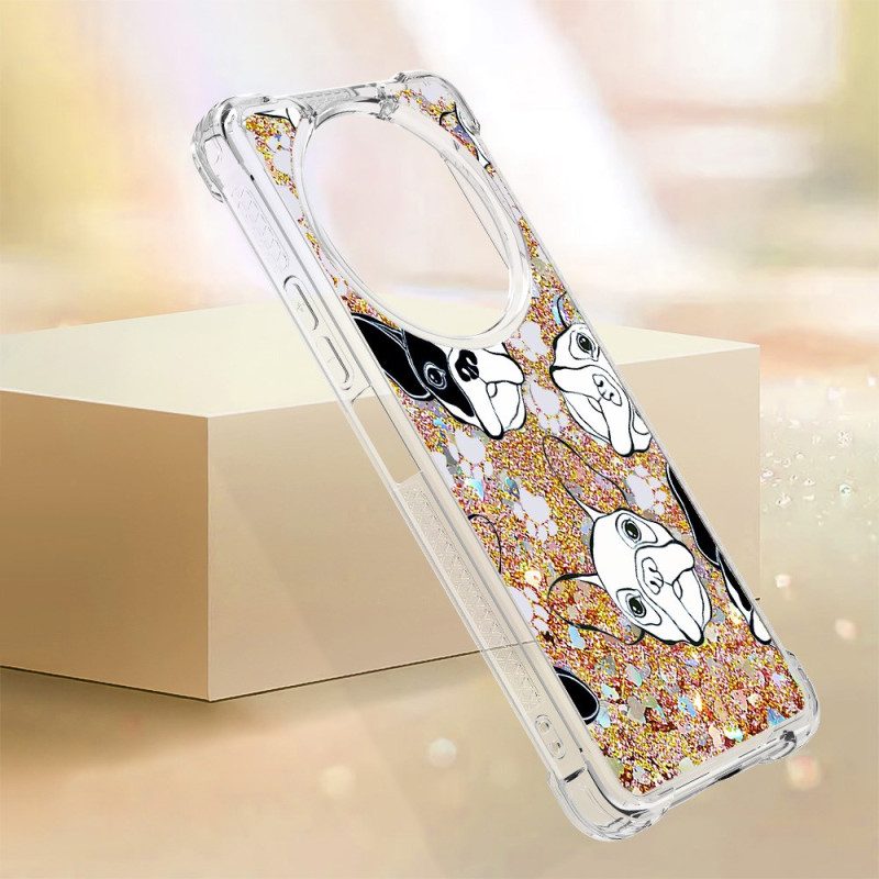 Mit Ihrem Musterdruckdesign, Ihrem Glitzernden Glitzer In Der Flüssigkeit, Die Sich Frei Bewegen Lässt, Und Ihrem Schwarz-Weißen Welpen Ist Sie Sowohl Praktisch Als Auch Stilvoll.