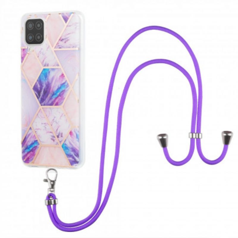 Hülle Für Samsung Galaxy M12 / A12 Mit Kordel Mit Marmorschnur