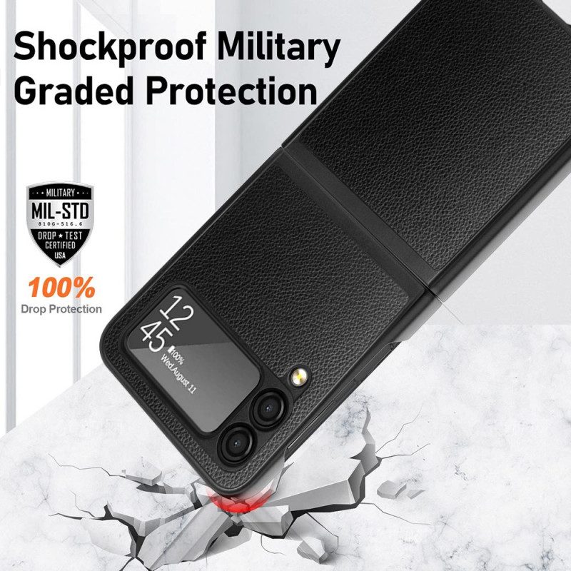 Ihr Samsung Galaxy Z Flip 3 5G Ist Mit Dieser 2-Teiligen Hülle Aus Litschi-Kunstleder Perfekt Geschützt.