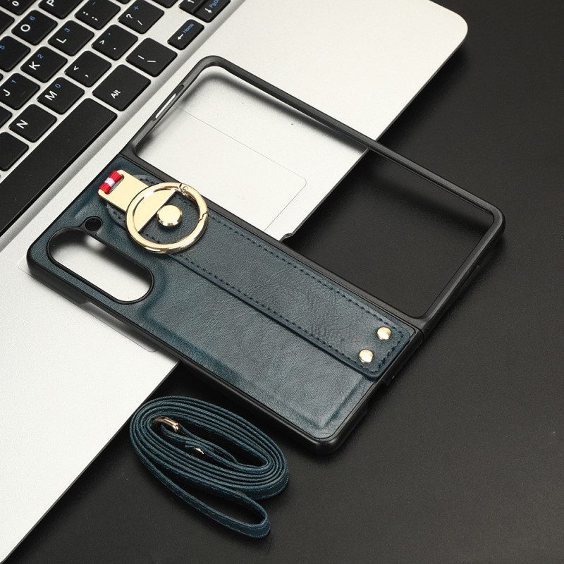Hülle Für Samsung Galaxy Z Fold 5 Kunstleder Mit Ring Und Schultergurt