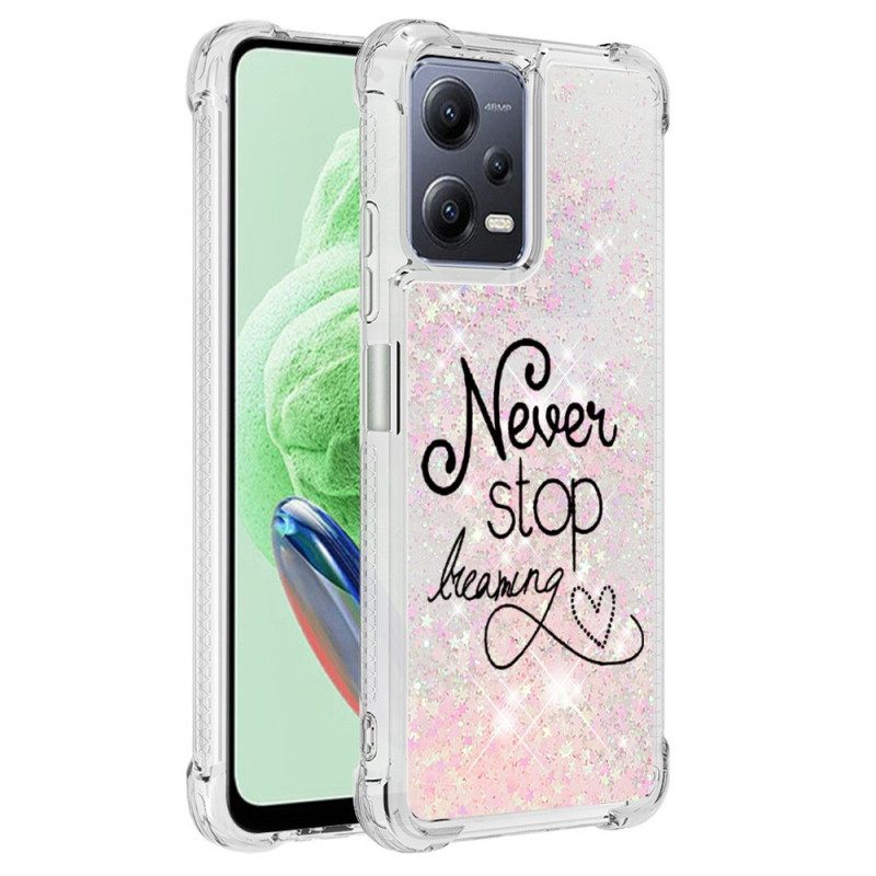 Ihr Xiaomi Redmi Note 12 5G/Poco X5 5G Ist Ein Wahrgewordener Traum Mit Dieser Never Stop Dreaming Glitzerhülle.
