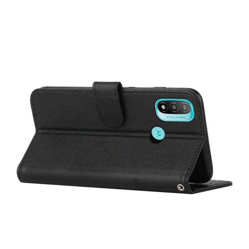 Die Hülle Mit Geo-Ledereffekt Und Riemen Bietet Umfassenden Und Multifunktionalen Schutz Für Das Moto E40 / E30 / E20.