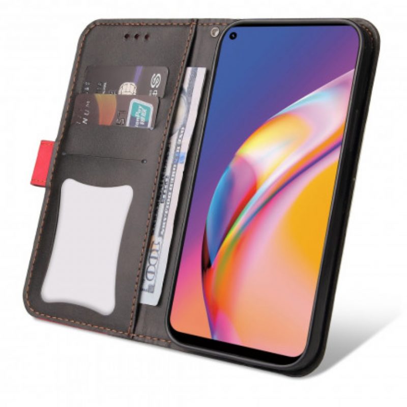 Lederhüllen Für Oppo A94 5G Farbiges Zweifarbiges Kunstleder