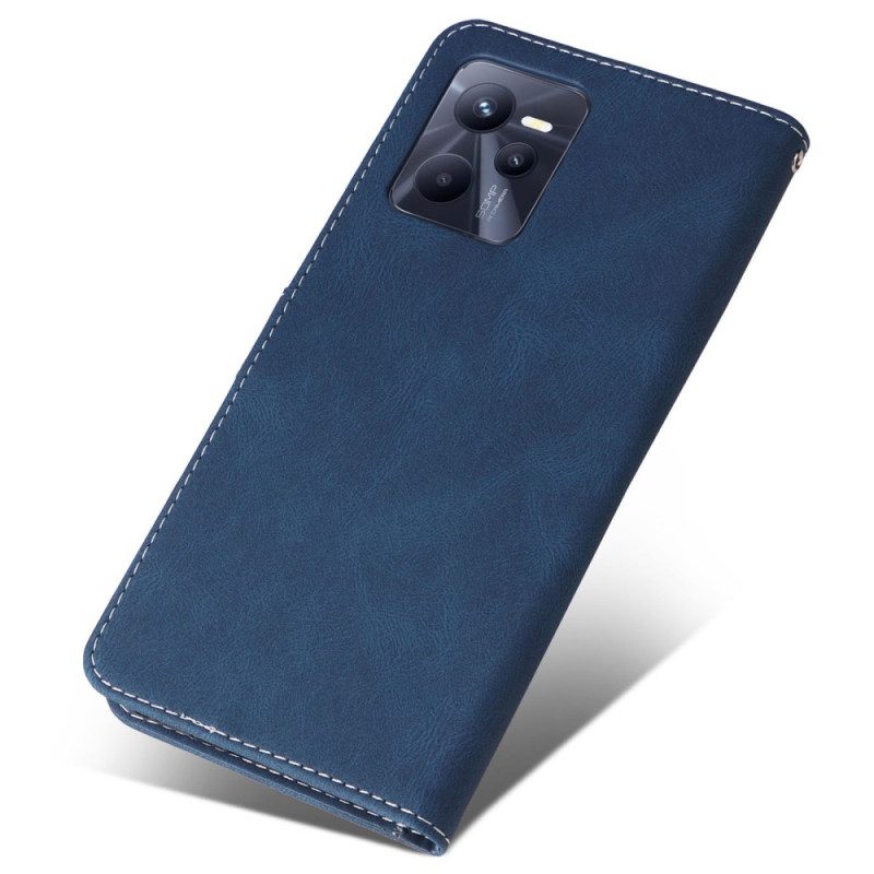 Mit Dieser Hülle In Dreifarbiger Lederoptik Mit Riemen Wird Ihr Realme C35 Gut Vor Stößen, Kratzern Und Staub Geschützt.
