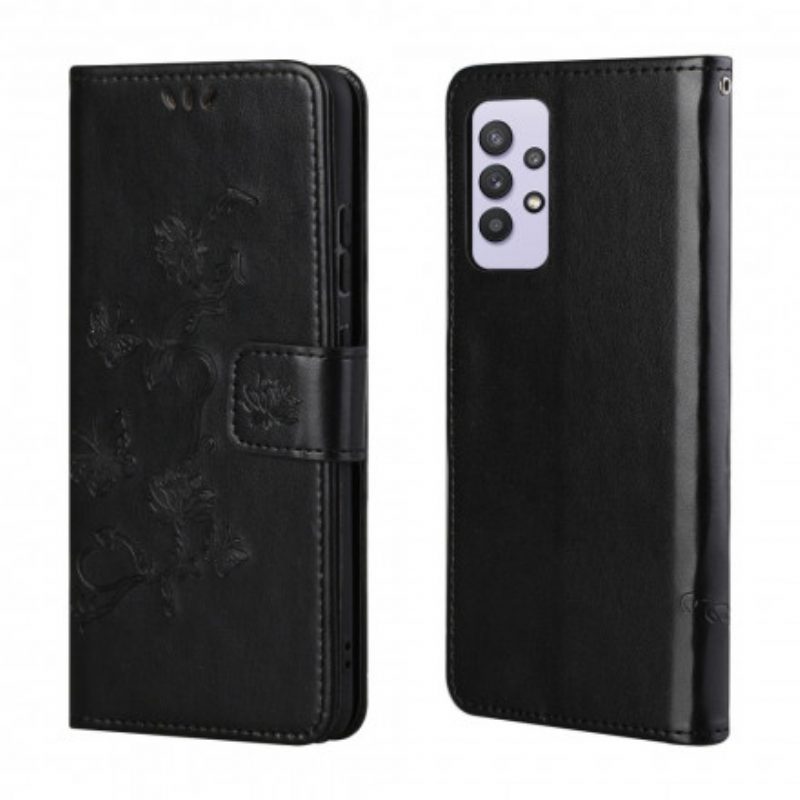 Lederhüllen Für Samsung Galaxy A32 Mit Kordel Schmetterlings- Und Blumenarmband