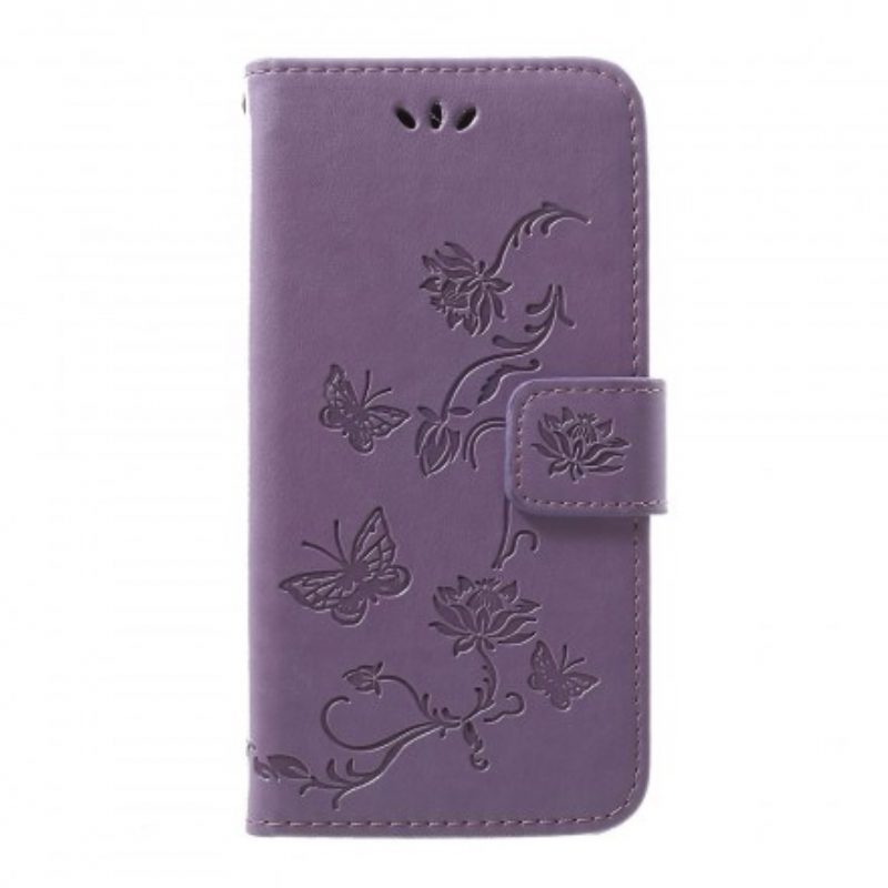 Lederhüllen Für Samsung Galaxy A40 Mit Kordel Schmetterlings- Und Blumenarmband