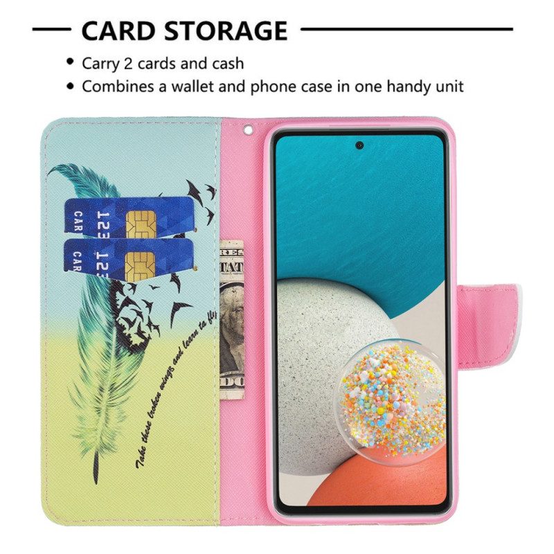 Die Learn To Fly-Hülle Sichert Das Gesamte Samsung Galaxy A53 5G Und Dient Gleichzeitig Als Brieftasche Und Ständer.