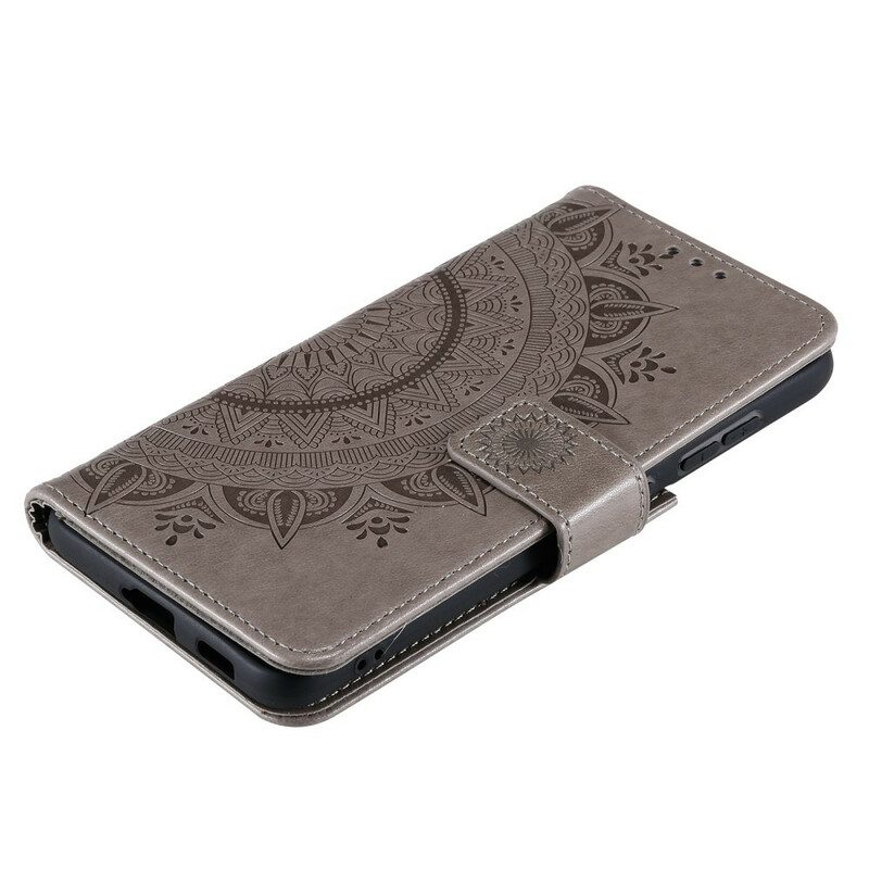 Ein Wunderschönes Cover Für Samsung Galaxy S21 Fe Mit Einem Mandala-Design Einer Sonne, Das Auch Als Geldbörse Und Ständer Dient.