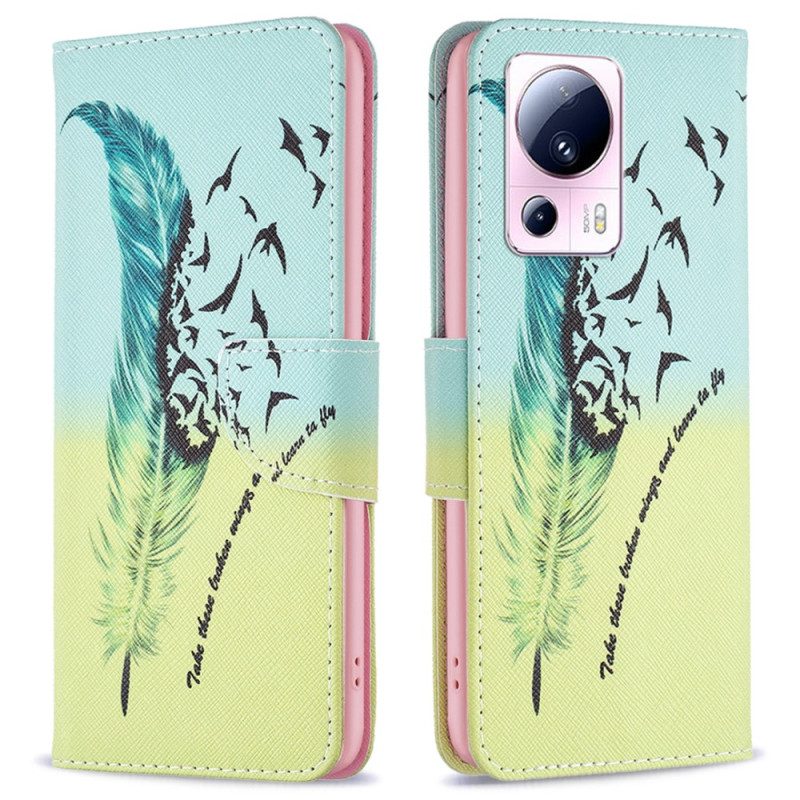 Mit Dieser Mit Einer Feder Verzierten Hülle Können Sie Ihr Xiaomi 13 Lite Vor Witterungseinflüssen Schützen Und Gleichzeitig Die Wallet-Funktionen Nutzen.