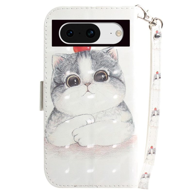 Lederhüllen Google Pixel 8 Grafische Katze Mit Schlüsselband