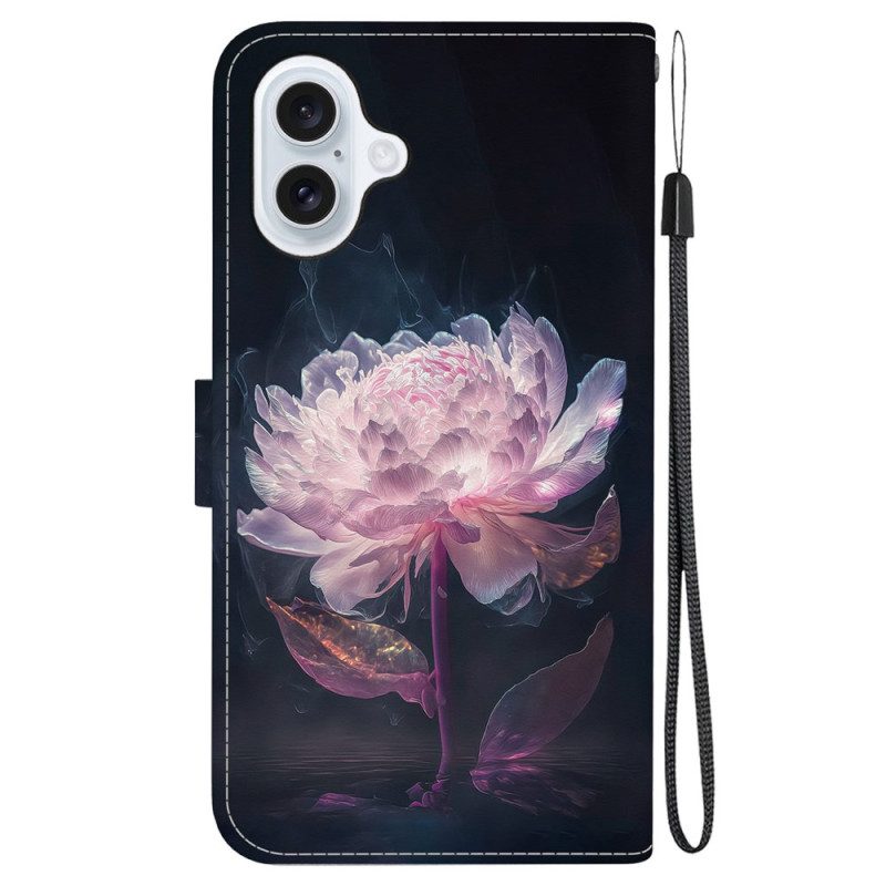 Lederhüllen iPhone 16 Handyhülle Lila Pfingstrose Mit Riemen