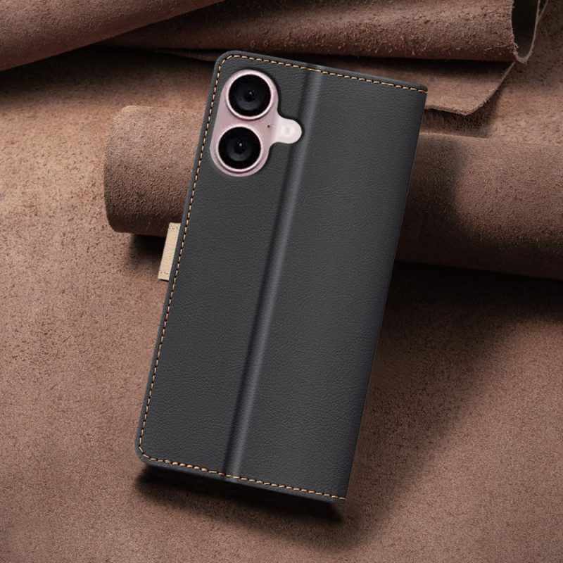 Lederhüllen iPhone 16 Plus Handyhülle Zweifarbige Rfid-blockierungstechnologie Binfen Color