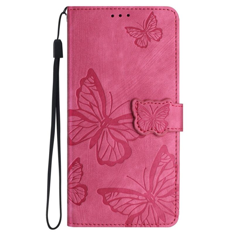 Lederhüllen iPhone 16 Plus Schmetterlingsaufdruck Mit Riemen