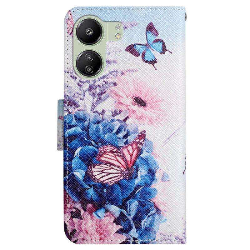 Entdecken Sie Unsere Lilafarbene Hülle Mit Schmetterlingsmuster Für Das Xiaomi Redmi 13C 4G/5G/Poco C65. Die Mit Einem Trageband Geliefert Wird.