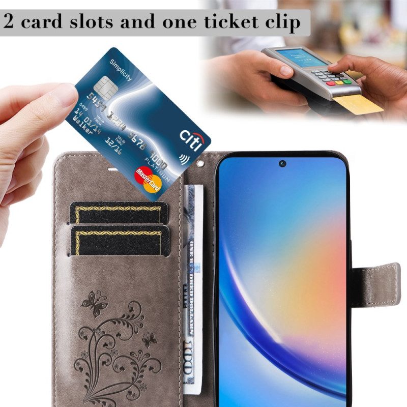 Lederhüllen Samsung Galaxy A55 5g Handyhülle Riesenschmetterlinge Mit Riemen