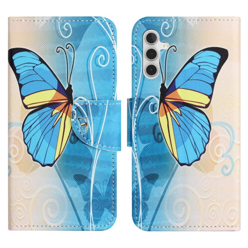 Lederhüllen Samsung Galaxy S24 Fe Gelber Und Blauer Schmetterling