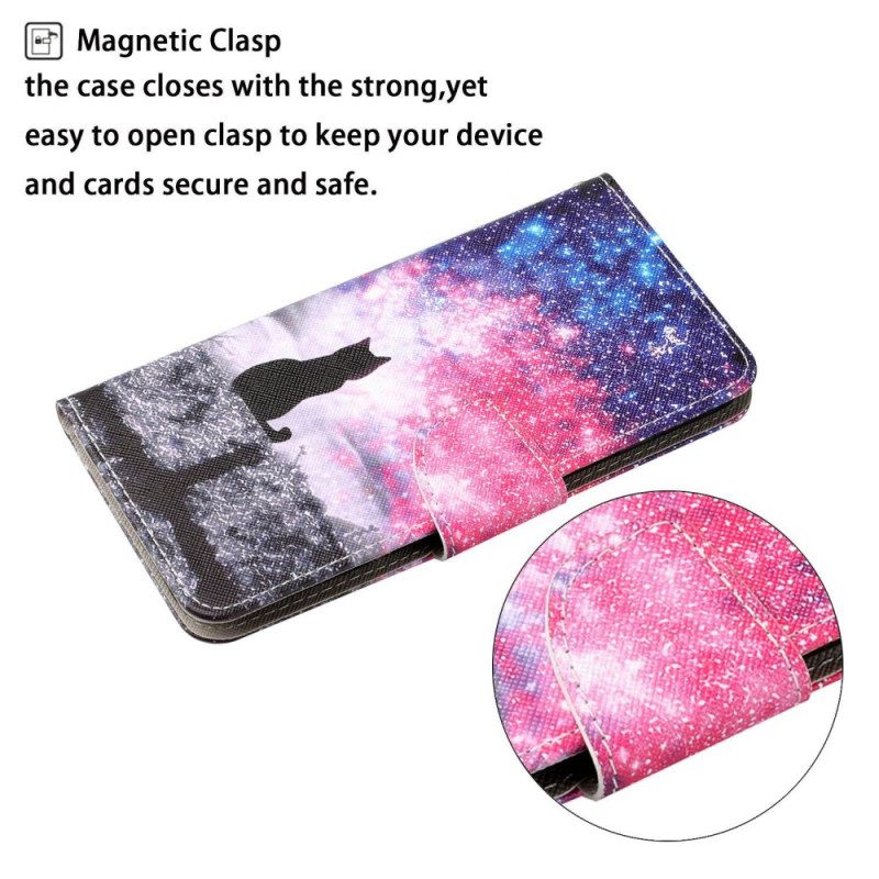 Lederhüllen Samsung Galaxy S24 Ultra 5g Handyhülle Sternenhimmel Und Schlüsselband Katze