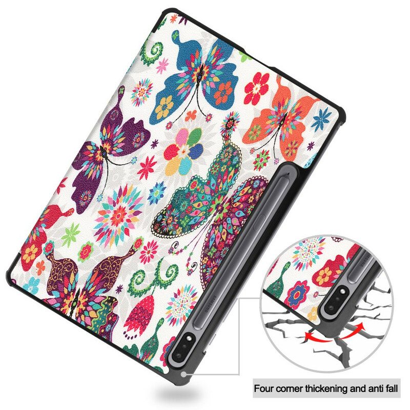 Eine Schicke Hülle Mit Stifthalter Für Das Samsung Galaxy Tab S8 / Tab S7 Mit Einem Design Voller Vintage-Schmetterlinge Und Blumen.